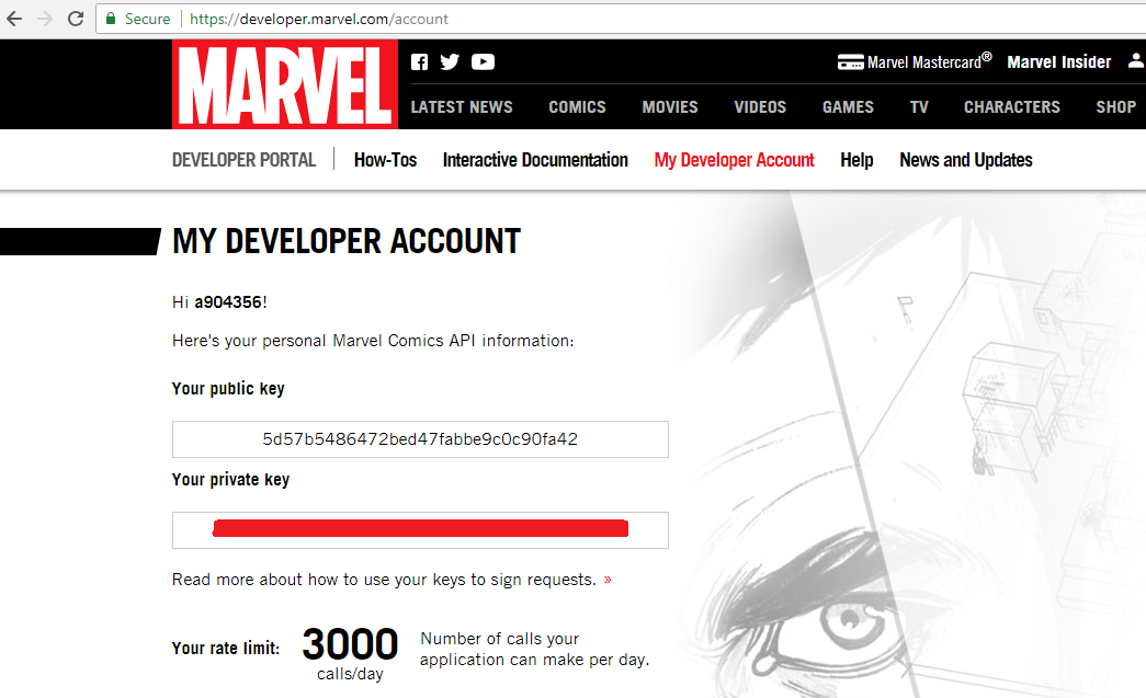 Con el fin de poder ejecutar el programa, es necesario registrarse en la página web de Marvel para obtener una clave. Los pasos a dar son los siguientes: